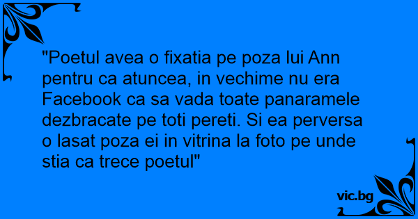 "Poetul avea o fixatia pe poza lui Ann pentru ca atuncea, in vechime nu era Facebook ca sa vada toate panaramele dezbracate pe toti pereti. Si ea perversa o lasat poza ei in vitrina la foto pe unde stia ca trece poetul"