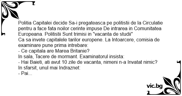 Ca sa invete capitalele tarilor europene. La Intoarcere, comisia de examinare pune prima intrebare: