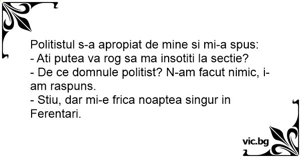 - De ce domnule politist? N-am facut nimic, i-am raspuns.