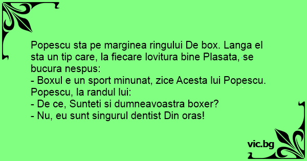 Popescu sta pe marginea ringului De box. Langa el sta un tip care, la fiecare lovitura bine Plasata, se bucura nespus:
