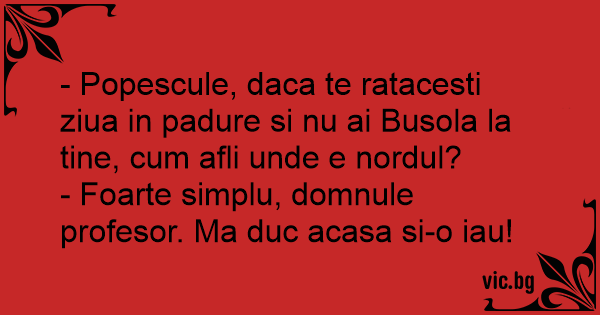 - Popescule, daca te ratacesti ziua in padure si nu ai Busola la tine, сuм afli unde e nordul?