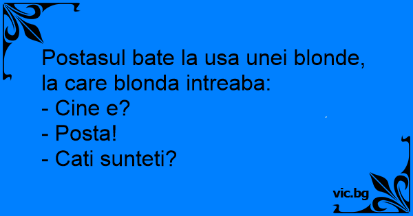 Postasul bate la usa unei blonde, la care blonda intreaba: