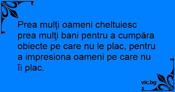 Prea mulţi oameni cheltuiesc prea mulţi bani pentru a cumpăra obiecte pe care nu le plac, pentru a impresiona oameni pe care nu îi plac.