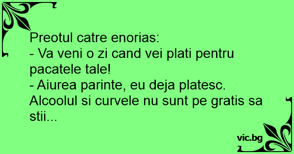 - Aiurea parinte, eu deja platesc. Alcoolul si curvele nu sunt pe gratis sa stii...
