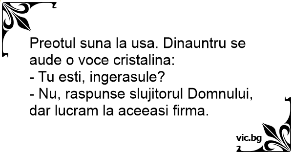 - Nu, raspunse slujitorul Domnului, dar lucram la aceeasi firma.