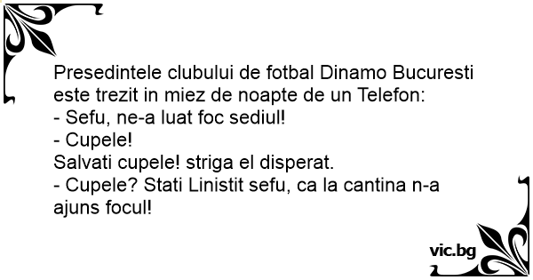 Presedintele clubului de fotbal Dinamo Bucuresti este trezit in miez de noapte de un Telefon: