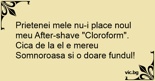 Prietenei mele nu-i place noul meu After-shave "Cloroform". Cica de la el e mereu Somnoroasa si o doare fundul!