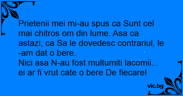 Prietenii mei mi-au spus ca Sunt cel mai chitros om din lume. Asa ca astazi, ca Sa le dovedesc contrariul, le-am dat o bere.