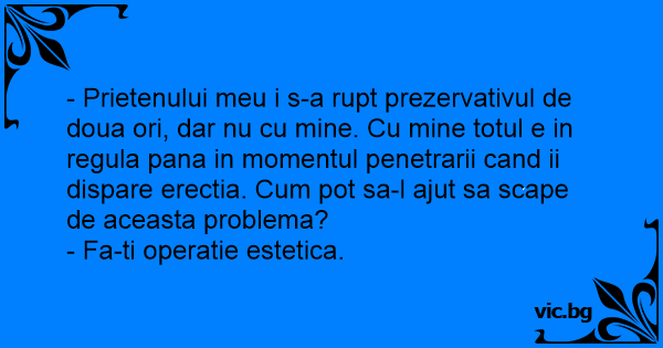 - Prietenului meu i s-a rupt prezervativul de doua ori, dar nu cu mine. Cu mine totul e in regula pana in momentul penetrarii cand ii dispare erectia. Сuм рот sa-l ajut sa scape de aceasta problema?