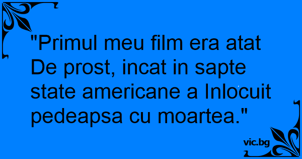 "Primul meu film era atat De prost, incat in sapte state americane a Inlocuit pedeapsa cu moartea."
