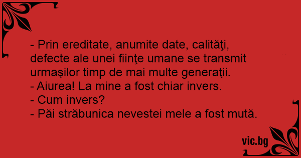 - Prin ereditate, anumite date, calităţi, defecte ale unei fiinţe umane se transmit urmaşilor timp de mai multe generaţii.