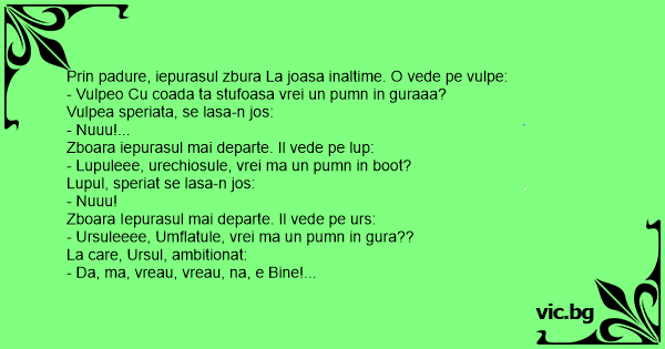 Prin padure, iepurasul zbura La joasa inaltime. O vede pe vulpe: