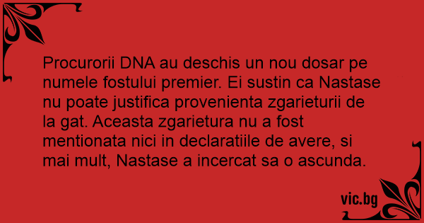 Procurorii DNA au deschis un nou dosar pe numele fostului premier. Ei sustin ca Nastase nu poate justifica provenienta zgarieturii de la gat. Aceasta zgarietura nu a fost mentionata nici in declaratiile de avere, si mai mult, Nastase a incercat sa o ascunda.
