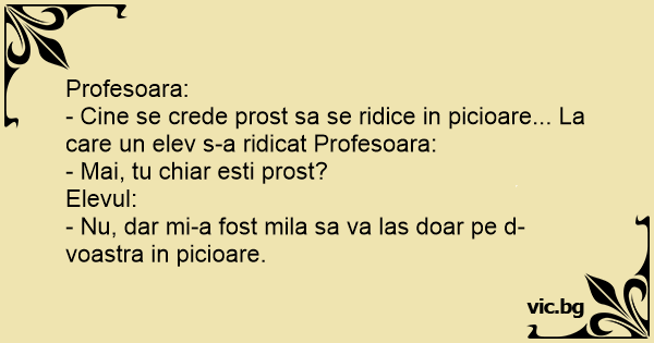 - Cine se crede prost sa se ridice in picioare... La care un elev s-a ridicat Profesoara: