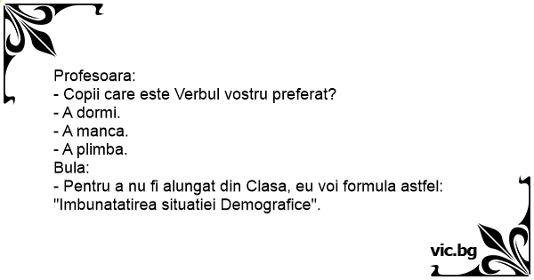 - Pentru a nu fi alungat din Clasa, eu voi formula astfel: