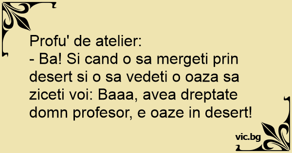 - Ba! Si cand o sa mergeti prin desert si o sa vedeti o oaza sa ziceti voi: Baaa, avea dreptate domn profesor, e oaze in desert!