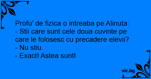 Profu' de fizica o intreaba pe Alinuta: