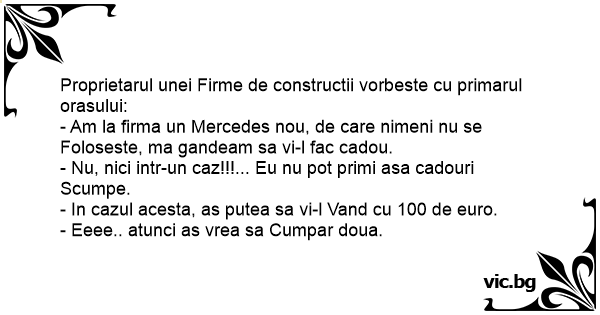 - Am la firma un Mercedes nou, de care nimeni nu se Foloseste, ma gandeam sa vi-l fac cadou.