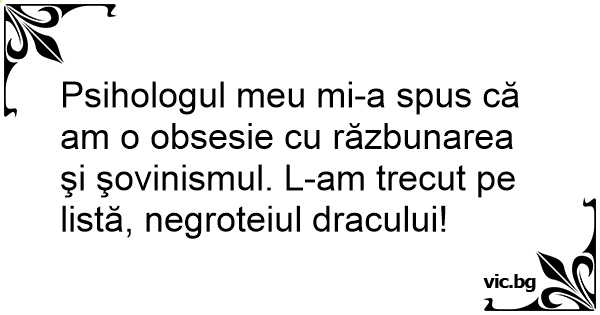 Psihologul meu mi-a spus că am o obsesie cu răzbunarea şi şovinismul. L-am trecut pe listă, negroteiul dracului!
