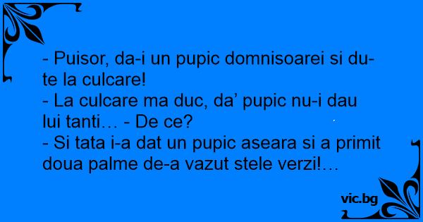 - La culcare ma duc, da’ pupic nu-i dau lui tanti… - De ce?