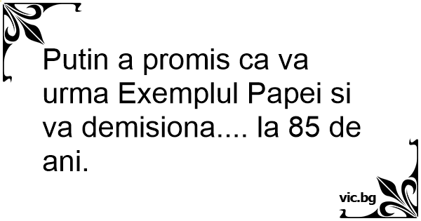 Putin a promis ca va urma Exemplul Papei si va demisiona.... la 85 de ani.
