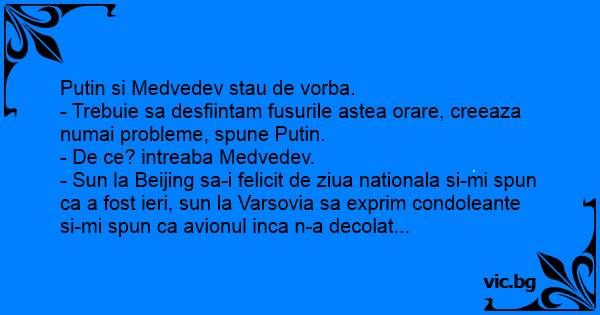 - Sun la Beijing sa-i felicit de ziua nationala si-mi spun ca a fost ieri, sun la Varsovia sa exprim condoleante si-mi spun ca avionul inca n-a decolat...