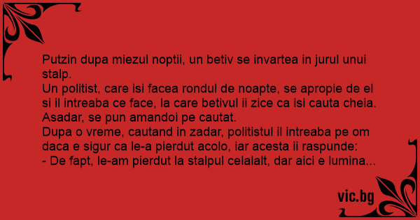 Putzin dupa miezul noptii, un betiv se invartea in jurul unui stalp.