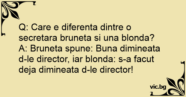A: Bruneta spune: Buna dimineata d-le director, iar blonda: s-a facut deja dimineata d-le director!