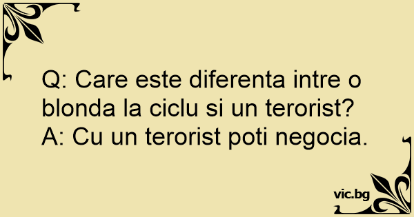 Q: Care este diferenta intre o blonda la ciclu si un terorist?
