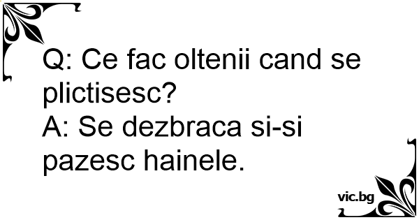 Q: Ce fac oltenii cand se plictisesc? A: Se dezbraca si-si pazesc hainele.
