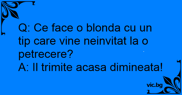 Q: Ce face o blonda cu un tip care vine neinvitat la o petrecere?