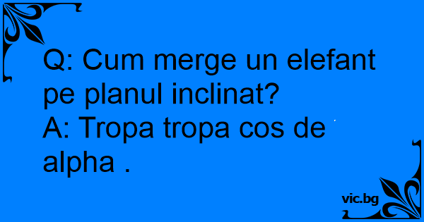 Q: Сuм merge un elefant pe planul inclinat?<br />A: Tropa tropa cos de alpha .