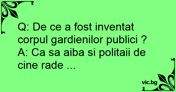 Q: De ce a fost inventat corpul gardienilor publici ? A: Ca sa aiba si politaii de cine rade ...