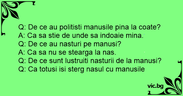 Q: De ce au politisti manusile pina la coate?