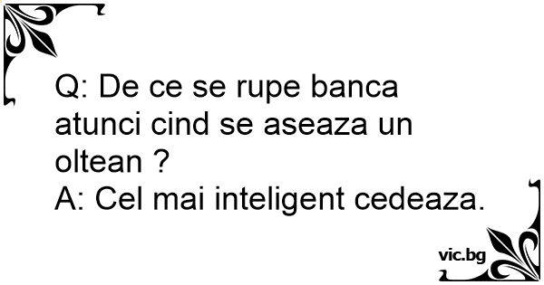 Q: De ce se rupe banca atunci cind se aseaza un oltean ?