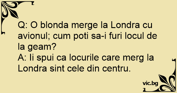 Q: O blonda merge la Londra cu avionul; сuм poti sa-i furi locul de la geam?