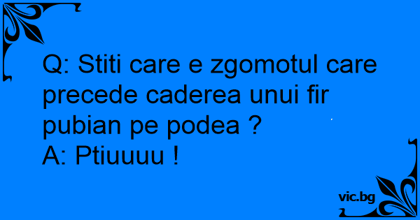 Q: Stiti care e zgomotul care precede caderea unui fir pubian pe podea ?