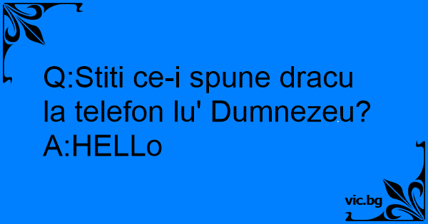 Q:Stiti ce-i spune dracu la telefon lu' Dumnezeu?