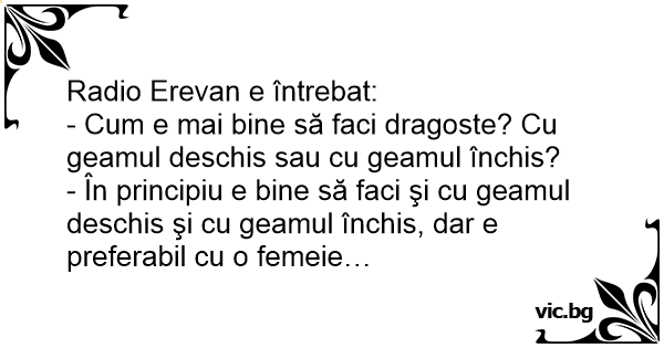 - Сuм e mai bine să faci dragoste? Cu geamul deschis sau cu geamul închis?