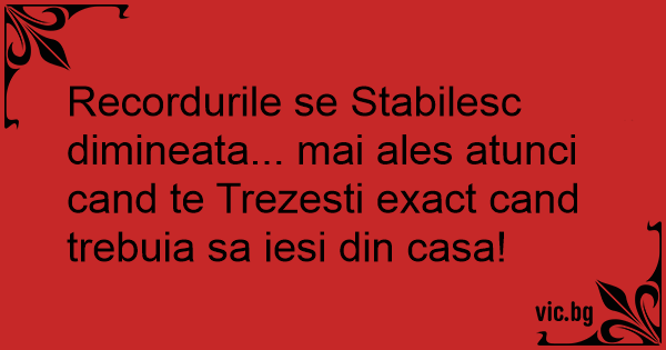 Recordurile se Stabilesc dimineata... mai ales atunci cand te Trezesti exact cand trebuia sa iesi din casa!