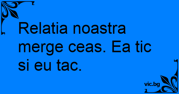 Relatia noastra merge ceas. Ea tic si eu tac.