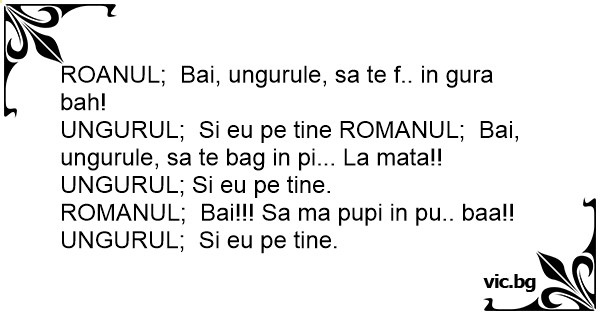 UNGURUL; Si eu pe tine ROMANUL; Bai, ungurule, sa te bag in pi... La mata!!