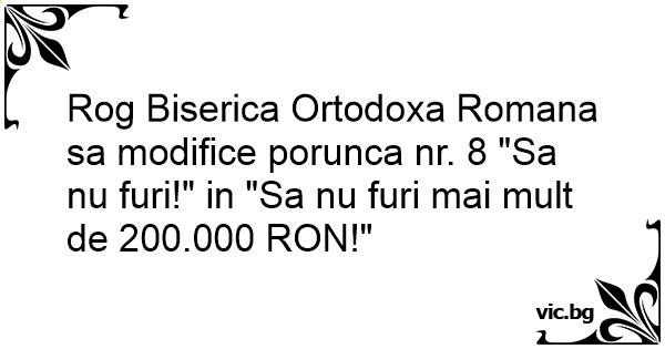 Rog Biserica Ortodoxa Romana sa modifice porunca nr. 8 "Sa nu furi!" in "Sa nu furi mai mult de 200.000 RON!"