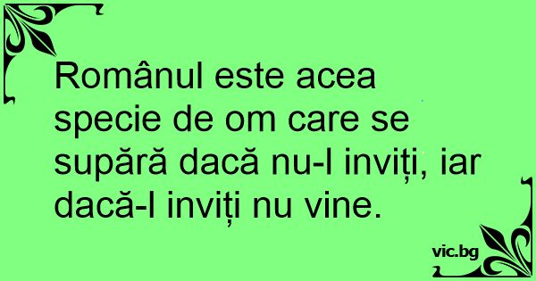Românul este acea specie de om care se supără dacă nu-l inviți, iar dacă-l inviți nu vine.