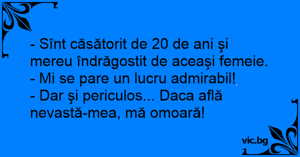 - Dar şi periculos... Daca află nevastă-mea, mă omoară!