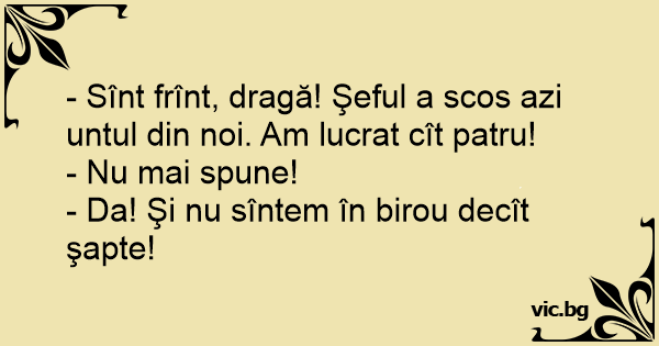 - Sînt frînt, dragă! Şeful a scos azi untul din noi. Am lucrat cît patru!