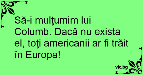Să-i mulţumim lui Columb. Dacă nu exista el, toţi americanii ar fi trăit în Europa!