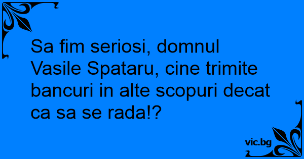 Sa fim seriosi, domnul Vasile Spataru, cine trimite bancuri in alte scopuri decat ca sa se rada!?
