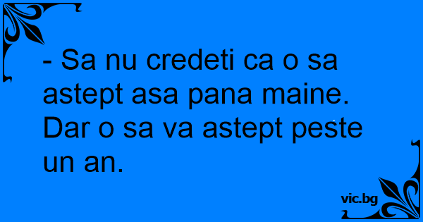 - Sa nu credeti ca o sa astept asa pana maine. Dar o sa va astept peste un an.