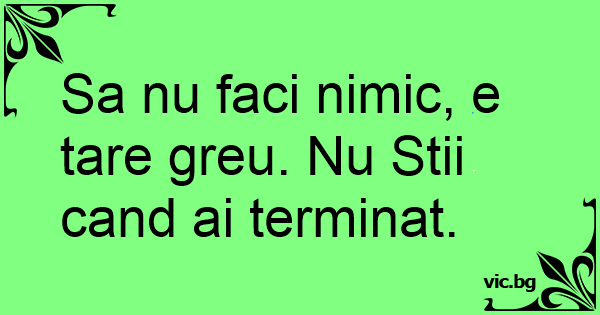 Sa nu faci nimic, e tare greu. Nu Stii cand ai terminat.